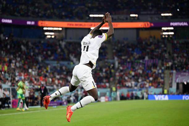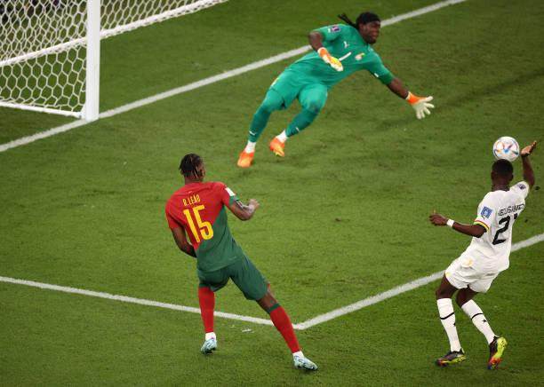 第55分钟,加纳快速反击,库杜斯狂奔50米后在左路单刀远射,皮球贴着草皮从球门右侧门柱划出。