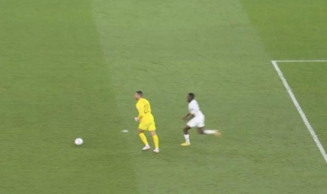 第31分钟,C罗在禁区左侧挤开加纳中卫吉库后将球打进,裁判判罚C罗犯规在先。